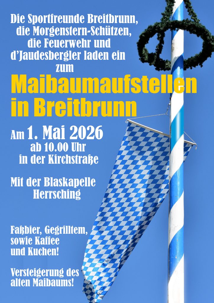 Am Freitag, dem 1. Mai 2026, wird der neue Maibaum ab 10:00 aufgestellt!